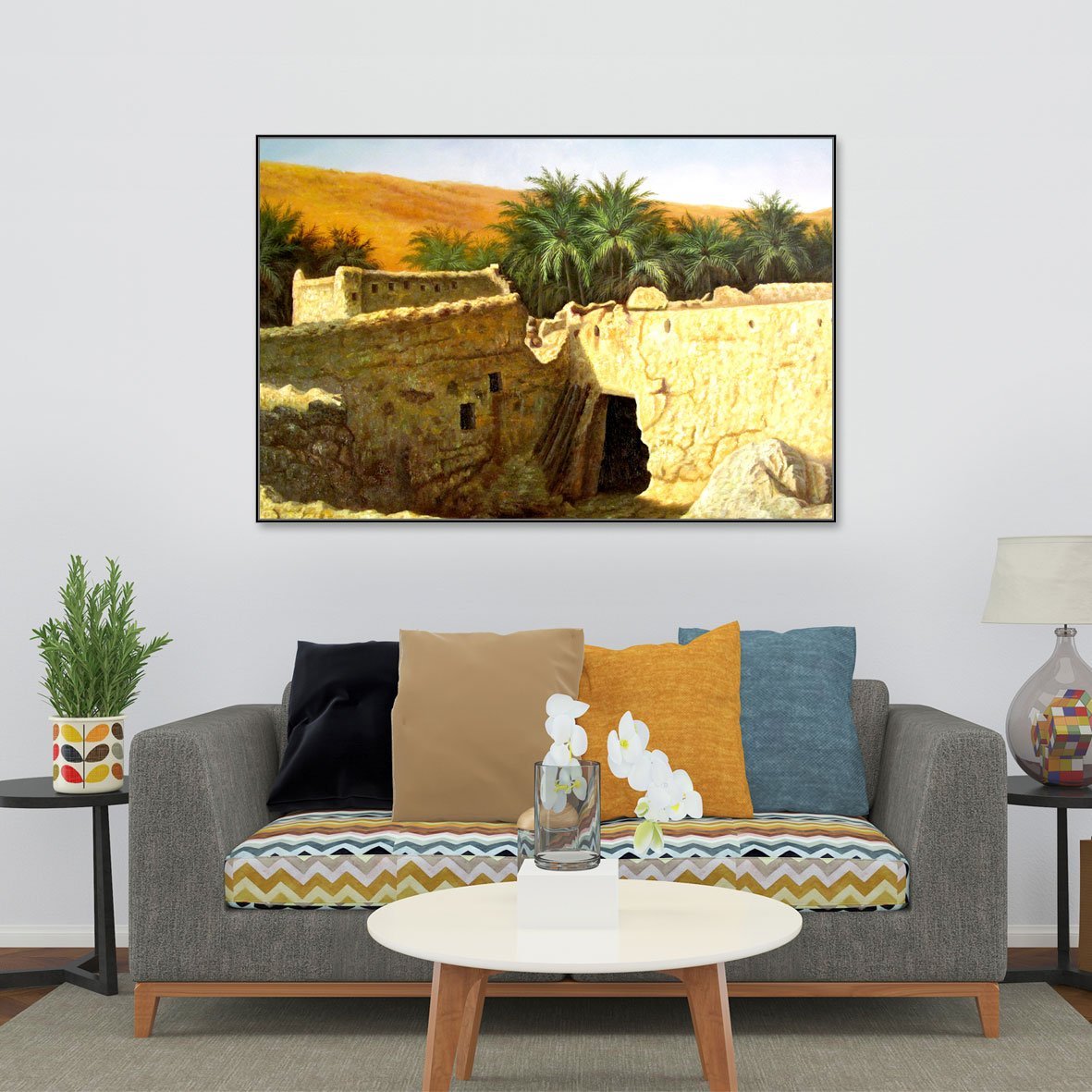 لوحة جدارية بتصميم مميز ، مطبوعة على أفخر أنواع قماش الكانفاس اللامع ، مثبت على إطار خشبي مخفي ، متوفرة للعميل بإطار فاخر ملون ، وبدون إطار خارجي فقط قماش مشدود على خشب سويدي معالج